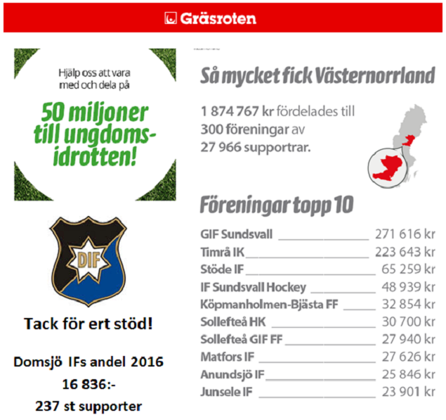 Årets utdelning från Svenska Spel är klar! Domsjö IFs andel 16 836:- Läs mer på Allehanda.se Svenska Spel Film från utdelningen av Gräsroten 2016 Domsjö IF 9 nov 2016 0kommentarer